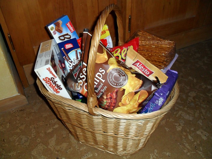 Spongebob-Eau-de-Toilette (damit ich bei einer Buchveröffentlichung gut rieche), sensitive Pflasterstrips (falls ich mir beim Schreiben die Fingerkuppen wundschreibe), Vitamin B (für Leistungsfähigkeit beim Schreiben), Kaugummis (da Kaugummikauen bewiesenermaßen die Denkleistung positiv beeinflusst), Schoko-Banane-Riegel (für die notwendige Energie), eine Sonnenblume (da ich die Sonne zum Schreiben benötige), M&M’s (als Nervennahrung) sowie einen Notizblock (denn eine nicht festgehaltene Idee ist eine verlorene Idee).