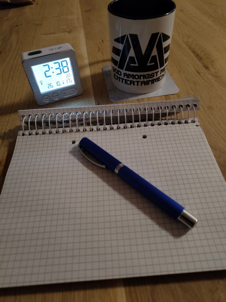 Bis auf vereinzelte Status-Updates auf WhatsApp gab es aber keinen Post. Warum? Weil meine kreative Zeit befristet ist. Oft stehe ich schon um 03:00 auf, um an meinen Werken zu schreiben. Da bin ich noch unverbraucht und kreativ, ehe mich das tägliche Hamsterrad auswringt und abends ausgelutscht ins Bett spuckt. Ich versetzte sogar ein zwei drei Dutzend BBQ-Artikel in den Hiatus, um Projekt Flummigrün absoluten Vorrang zu gewähren. Denn jeder Post, jedes Update frisst kreative Zeit. Und ich wollte 2025 unbedingt mit dem Erstentwurf fertig werden.