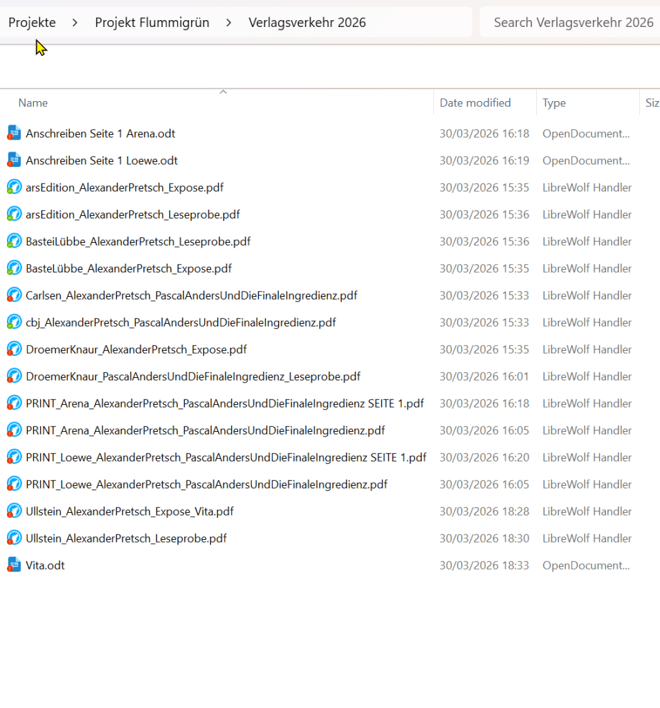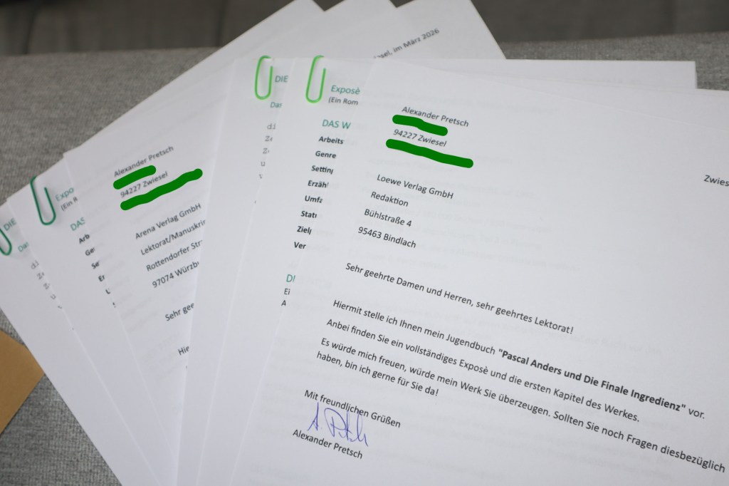 800 Wörter. 3 Minuten. 0 KI-Inhalte. Mit Bildchen! tl;dr-Version: Ich habe Projekt Flummigrün an acht Verlage geschickt!